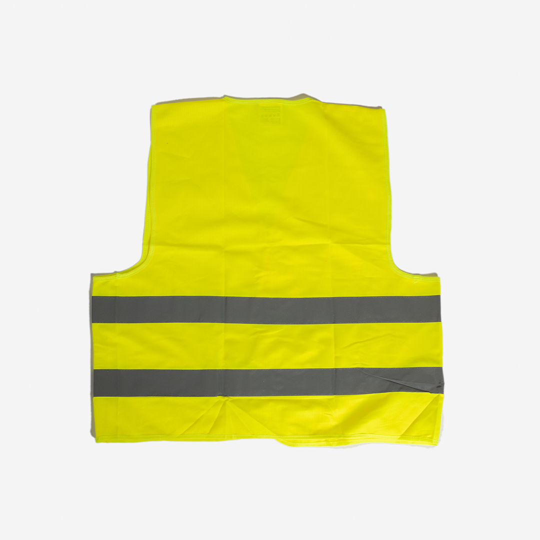 Gilet 100% polyester bandes rétro-réflichissantes cousues haute visibilité couleur argent. Fermeture par bande agrippante.
