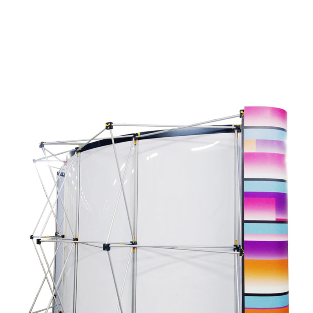 L'affichage pop-up le plus simple est livré avec un seul panneau en tissu sans couture. Il reste connecté au cadre. Impression haute résolution par sublimation thermique sur un tissu de qualité supérieure infroissable. Des couleurs vives qui ne se décolorent pas. Il est extrêmement léger et très portable. Disponible en tailles de 8' de large ou 10' de large.