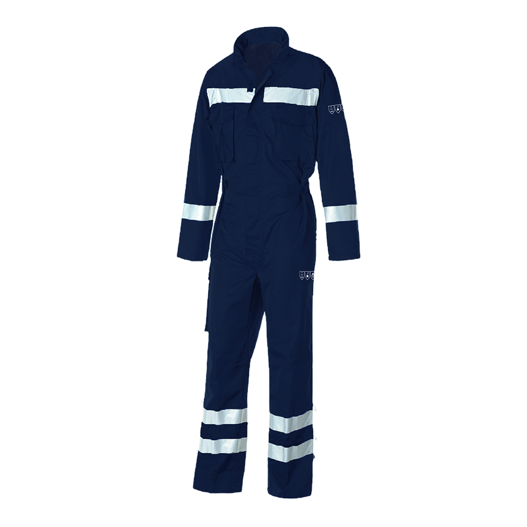 Combinaison multirisque conçue pour protéger l'utilisateur dans des conditions dangereuses de risques de chaleur et risques chimiques.