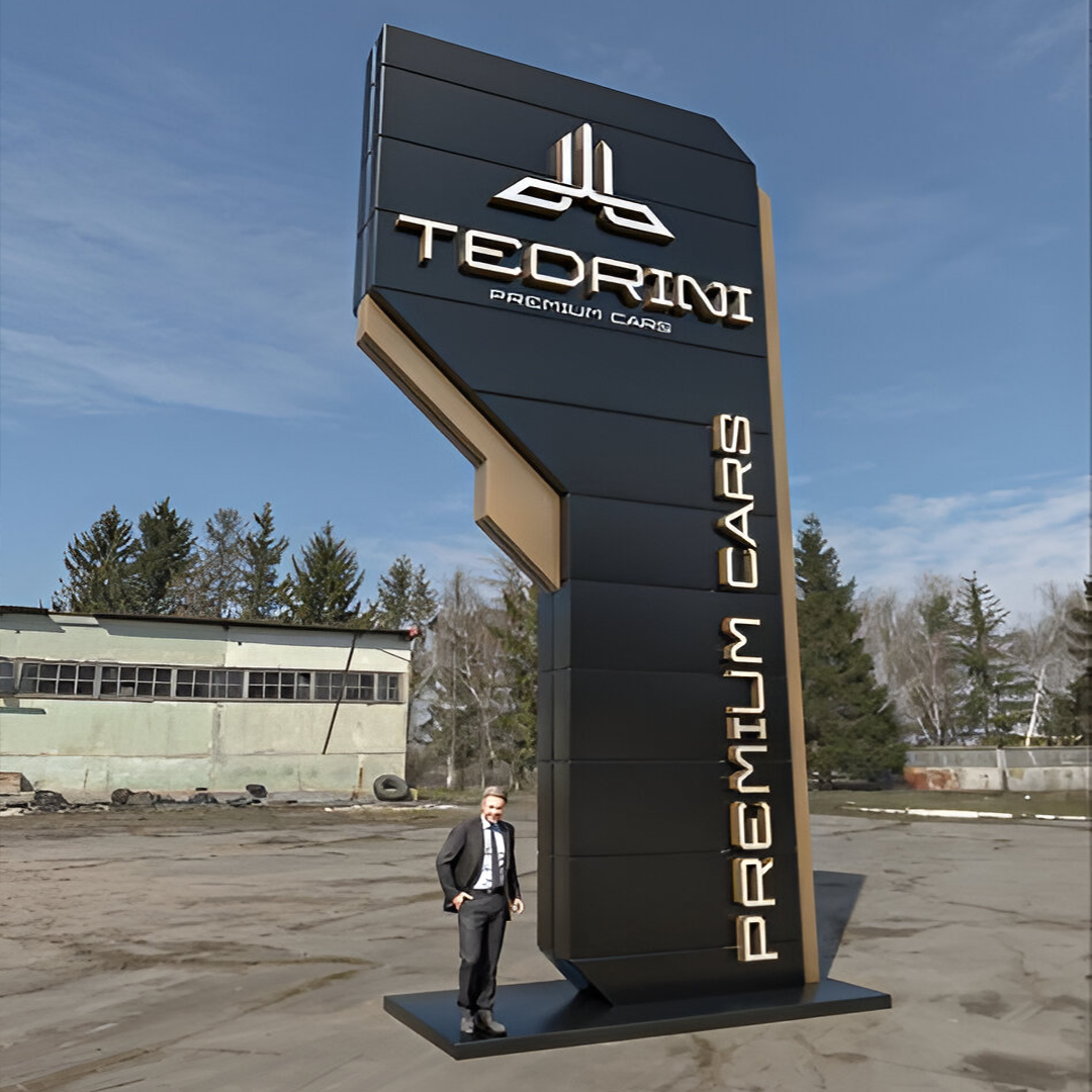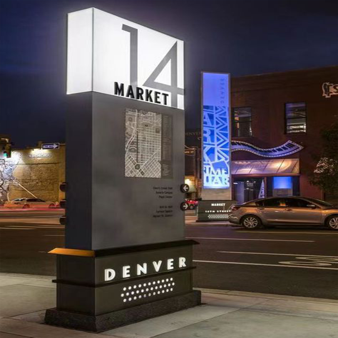 La signalétique directionnelle et les totems sont des éléments placés à proximité des lieux, posés au mur ou autoportés.